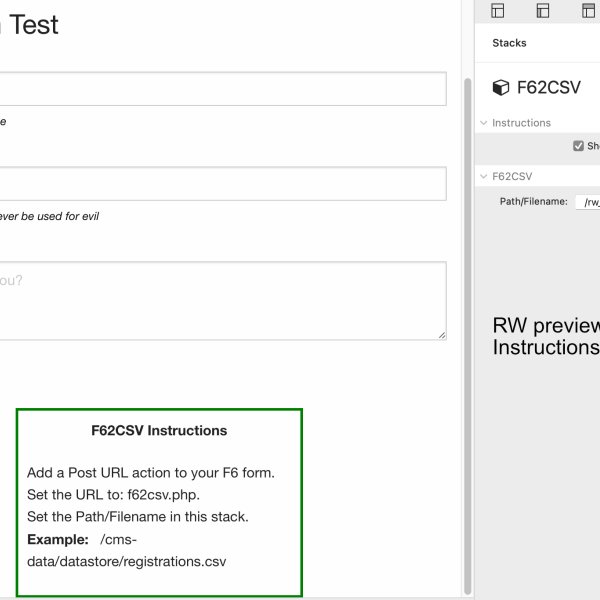 F62CSV is designed to allow you to write the contents of a Foundation 6 form to a CSV file on your server