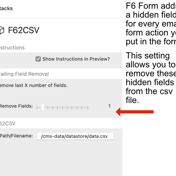 - In the F6 Ajax form action add f62csv.php to the URL field.