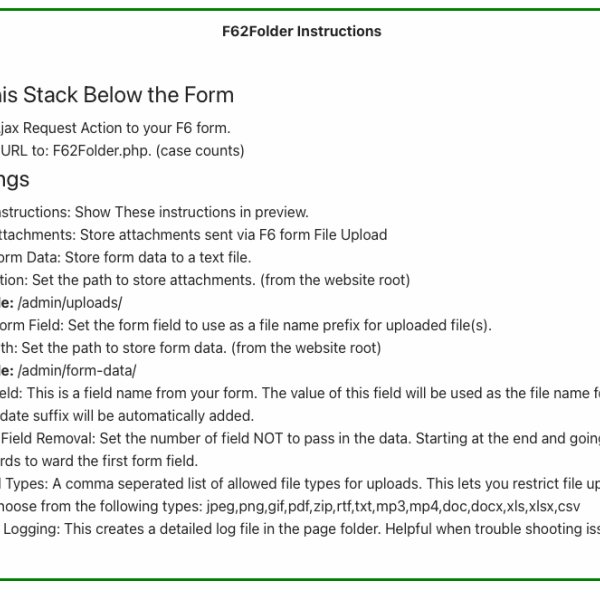 F62Folder allows you to send the form data AND attachments to folder(s) on your server.