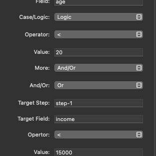 - Case/Logic: Choose to use case statement or logic expressions. Note this control effects what other controls display.