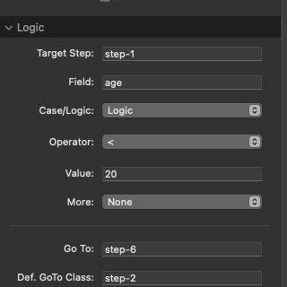 For each step, add the Field name(the actual value of the name parameter of that input). This is the field that you will compare to the value you set.