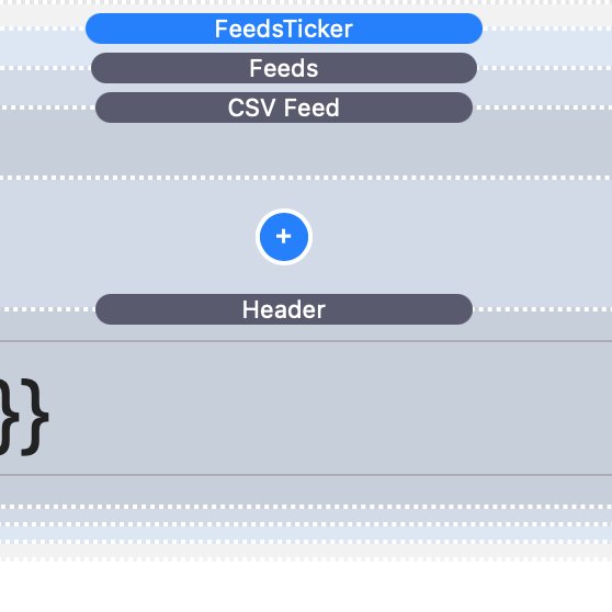 - Add the Stack: Drag the FeedsTicker stack onto your Stacks page where you want the ticker to display. Drag your feeds stack into the FeedsTicker drop zone. Choose your data source in feeds, add a stack for the text and your feeds macros.